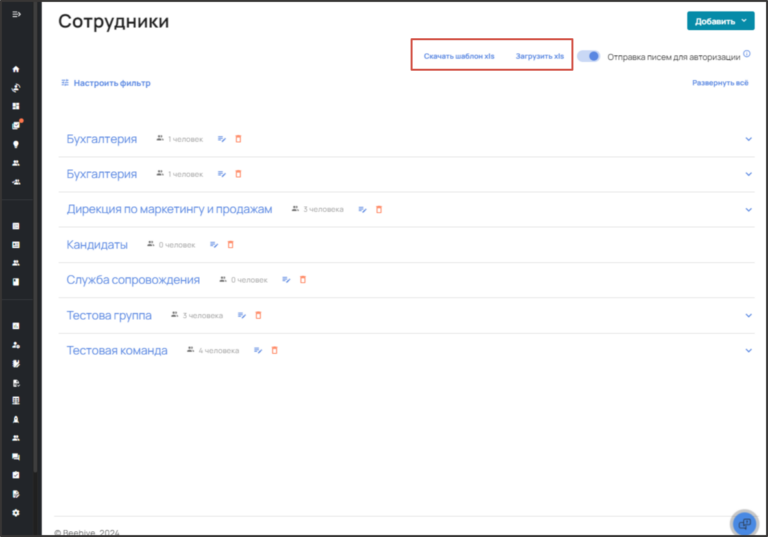 После загрузки файла сотрудники добавятся на платформу и будут распределены по командам и организационной структуре.